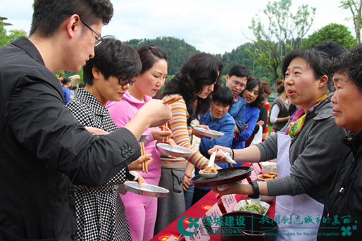 阳春之季,美食当歌,2014年4月27日下午,约120名业主受邀参加在绿城•建德春江明月销售展示中心前的草坪区,举办的首届绿城•建德春江明月"邻里百家宴"私房菜选拔赛。丰富的自助小吃、新鲜可口的水果,业主们亲手烹制的各路美食,让现场变成了美味的天堂。