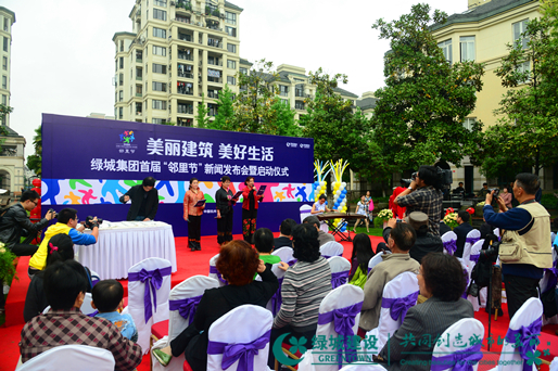 俗话说,远亲不如近邻。在人际关系逐渐冷漠的当今社会,邻里的和睦、友善就显得尤为重要。2014年4月27日,“美丽建筑 美好生活”--绿城集团首届“邻里节”新闻发布会暨启动仪式在绿城•杭州桂花城隆重举行。杭州市文明办副主任康志友,杭州市书法家协会副主席秘书长、杭州画院常务副院长王小勇,绿城房产集团执行总经理傅林江,绿城物业服务集团总经理杨掌法,绿城物业服务集团副总经理吴志华,绿城房产集团园区服务事业部副总经理汪婷婷以及20余家在杭主流媒体、近300名绿城业主出席了本次活动。